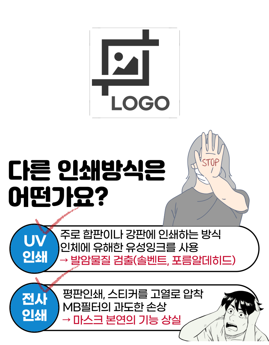 ★인체에 무해한 수성잉크 특성 상 잉크가 마스크에 스며드는 과정에서 약간의 흐림 현상이 나타날 수 있습니다.